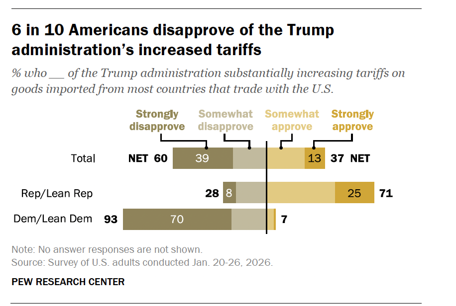 Further, on the specific question of tariffs, roughly 60% of the country is against him according to a Pew Research poll from earlier this month: